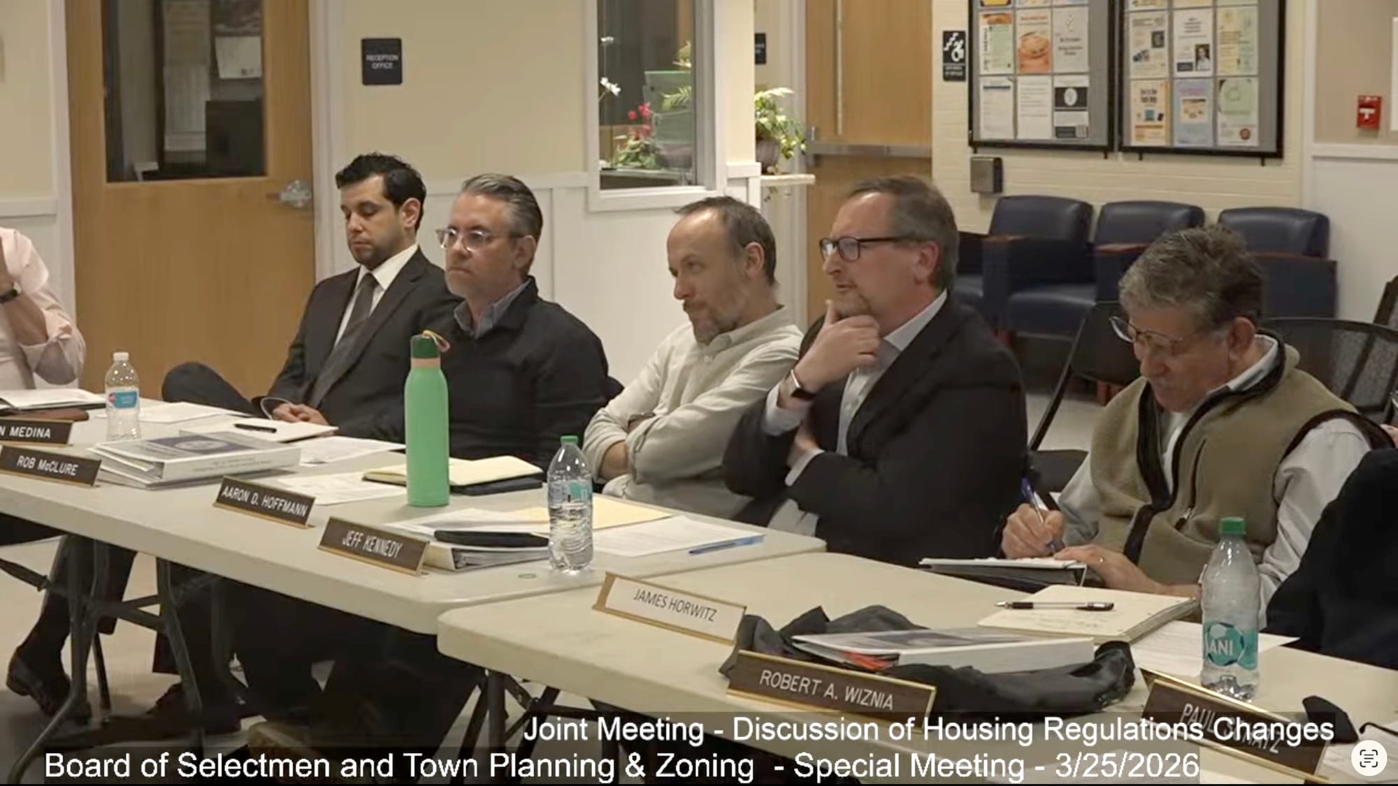 At 6:30 PM, the Board of Selectmen joined the Town Plan & Zoning Commission, along with representatives from multiple town boards and commissions, for a working discussion on housing-related regulatory changes (see agenda).