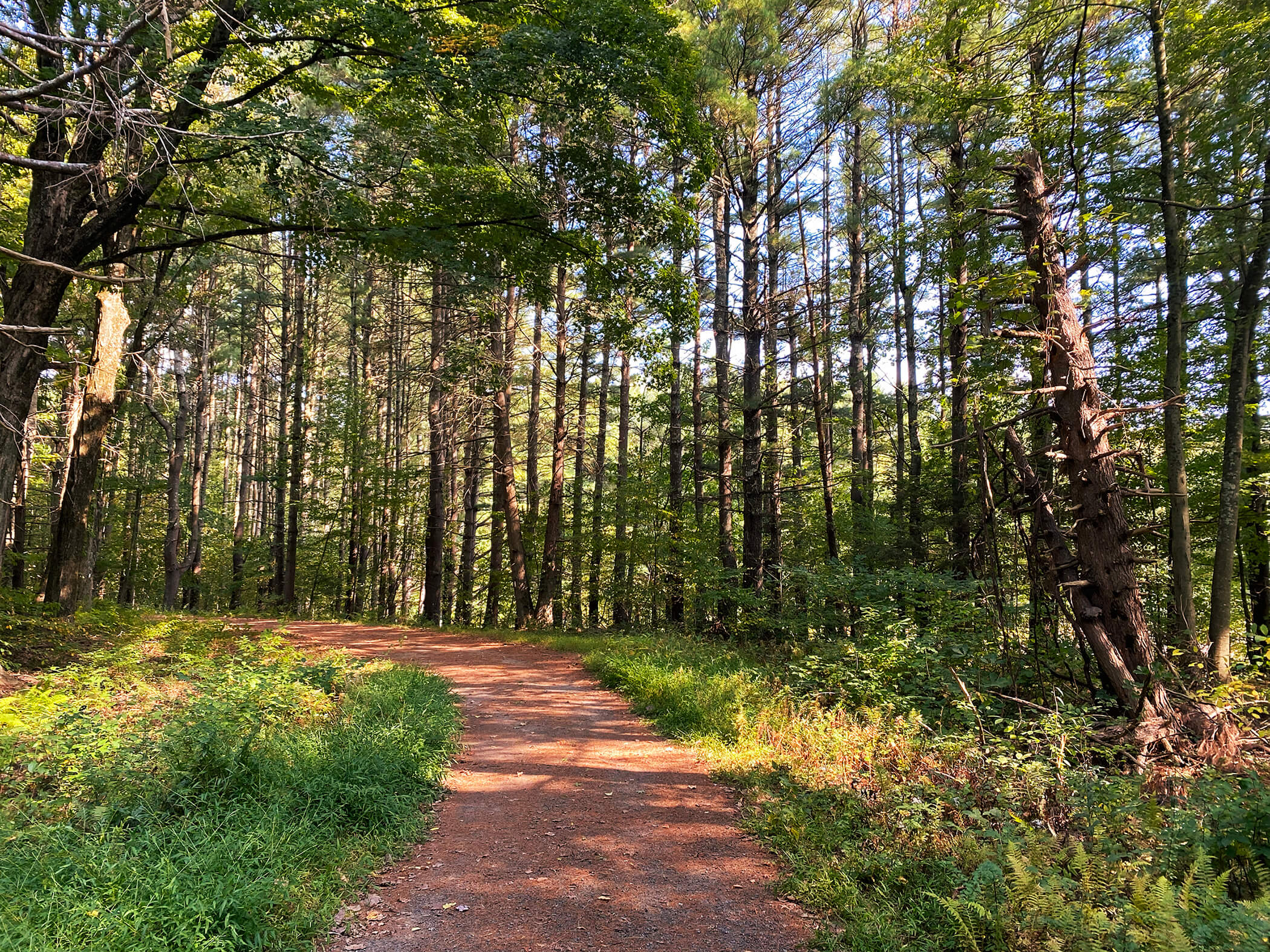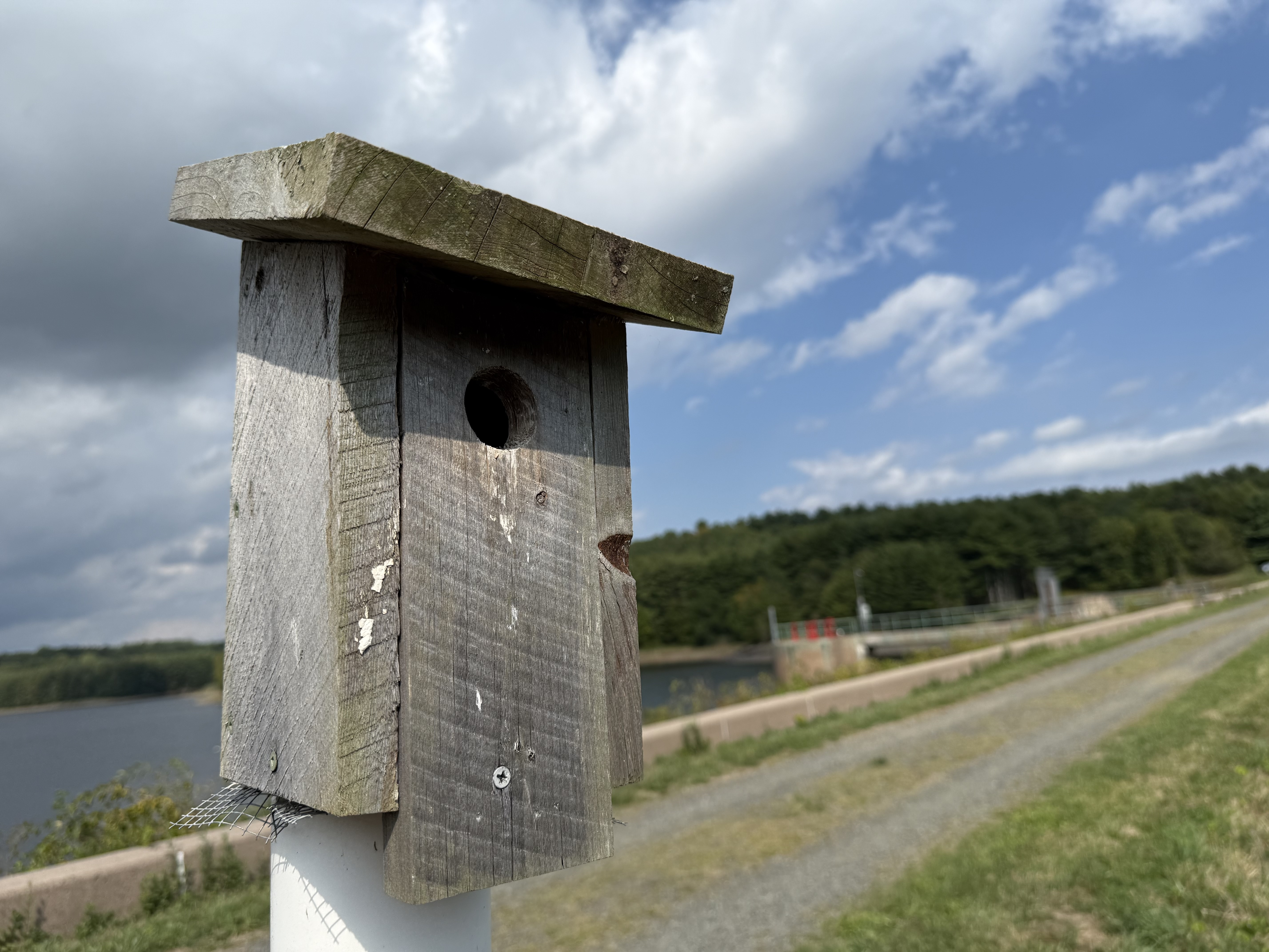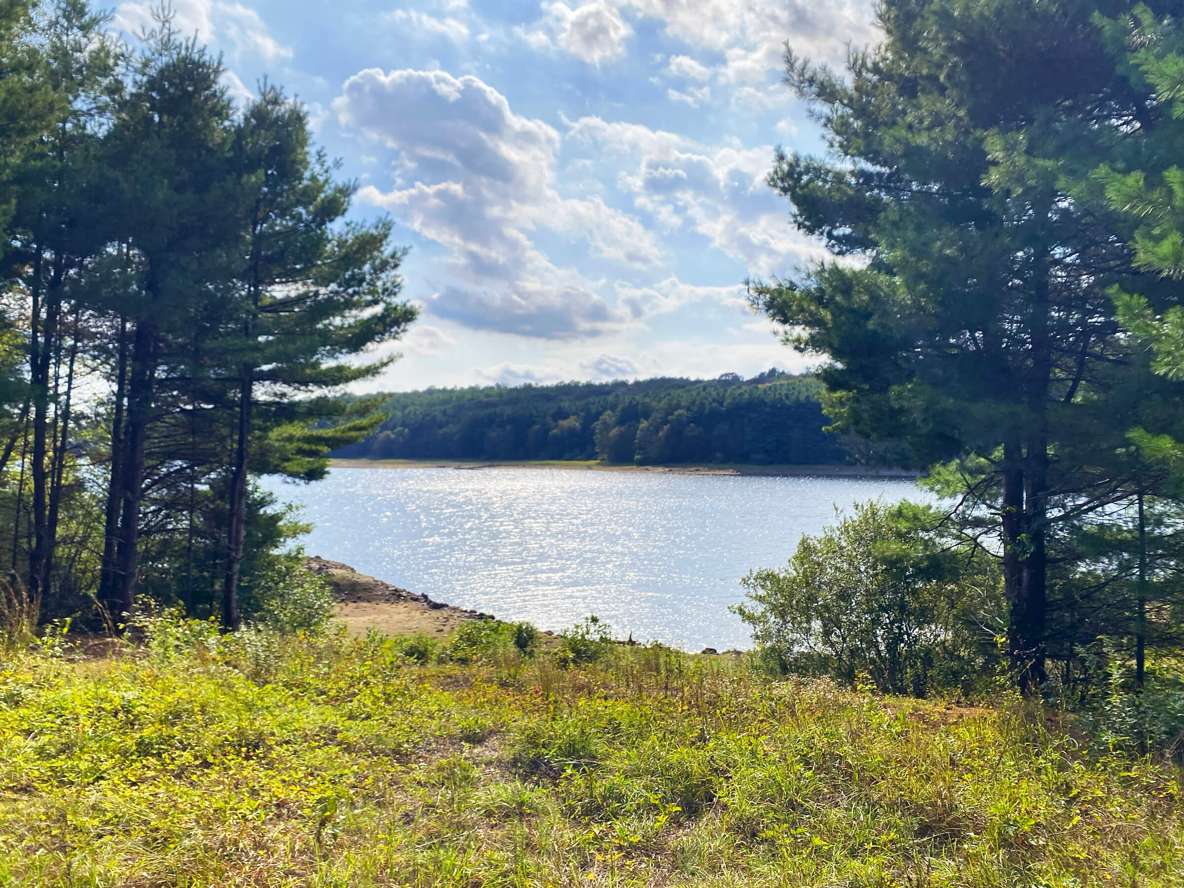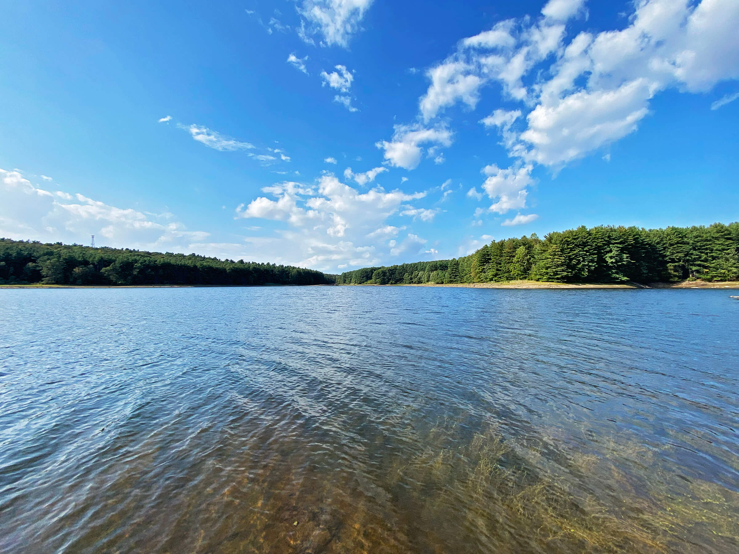 The lake offers opportunities for hiking and fishing, is a haven for birding, and from time to time, horseback riders can be seen threading quietly through the woods. On my walk that day, the leaves had not yet begun to turn, but the air carried a hint of the season ahead. I’ll return in the coming weeks to see the reservoir framed in full autumn color. Along the shore, I passed two people fishing quietly, rods angled toward the water. Moments later, a flock of Canada geese descended gracefully, skimming the surface before splashing down in a perfect landing. Scenes like these highlight why Lake Chamberlain is cherished by the community it serves.