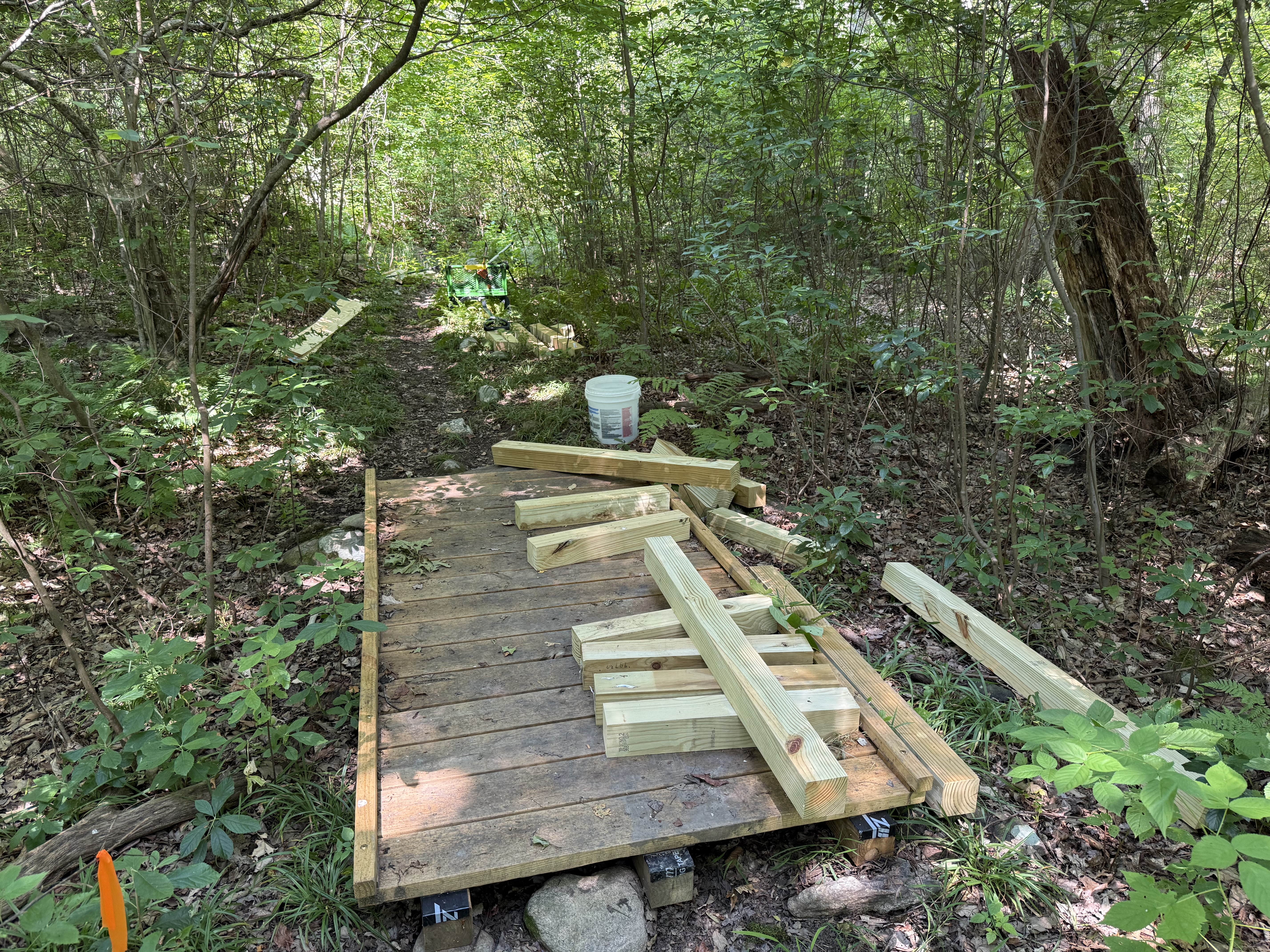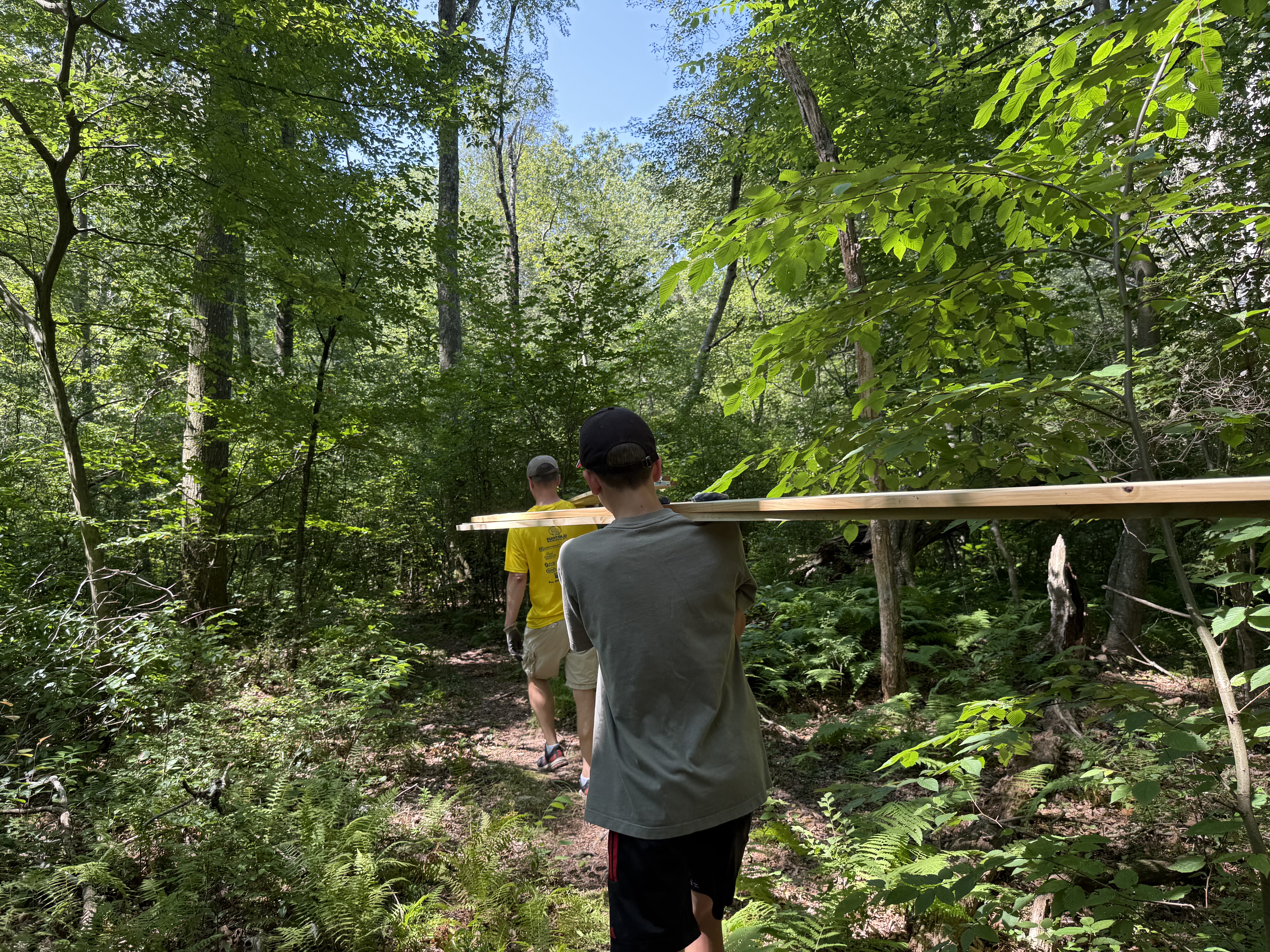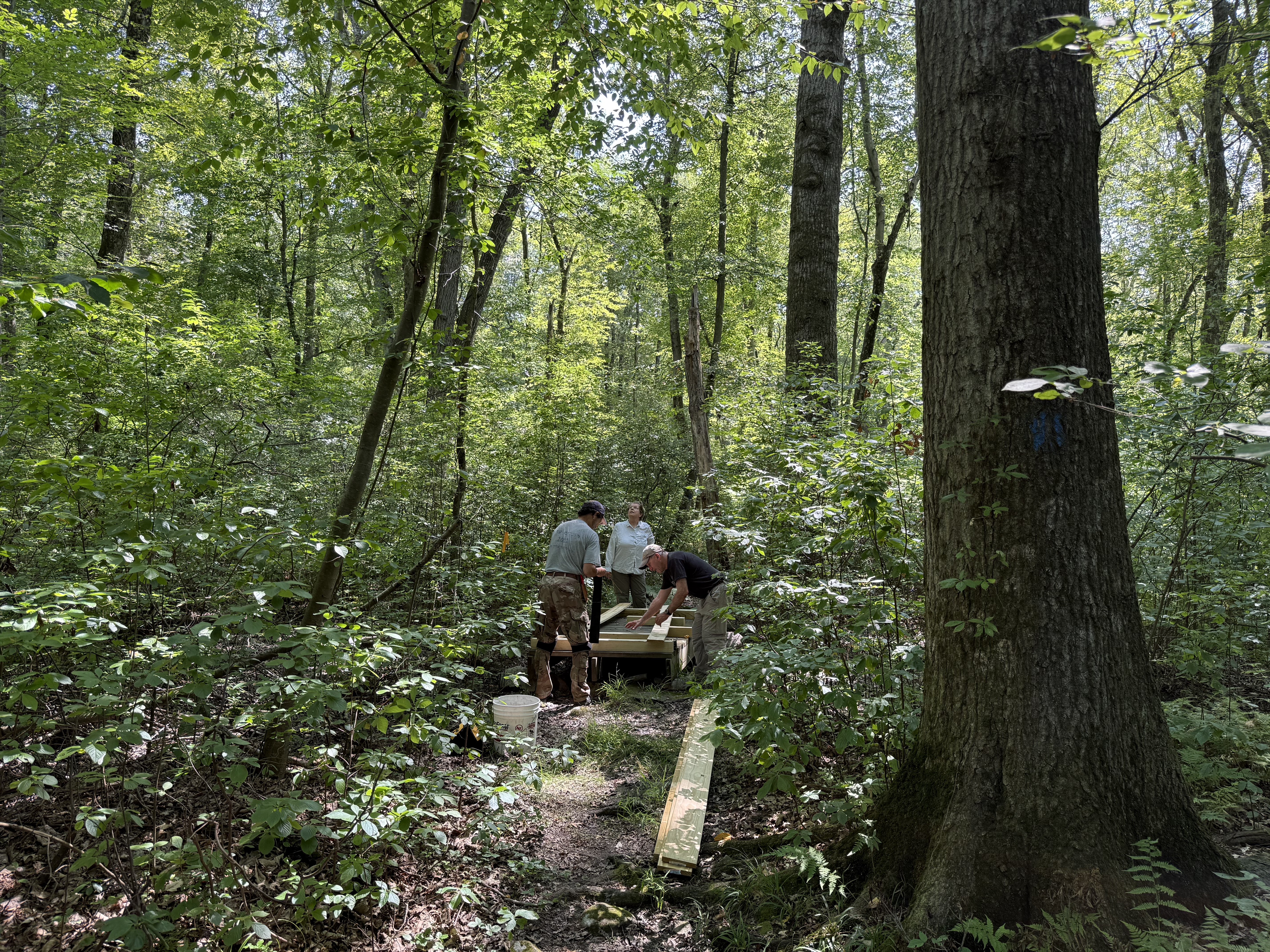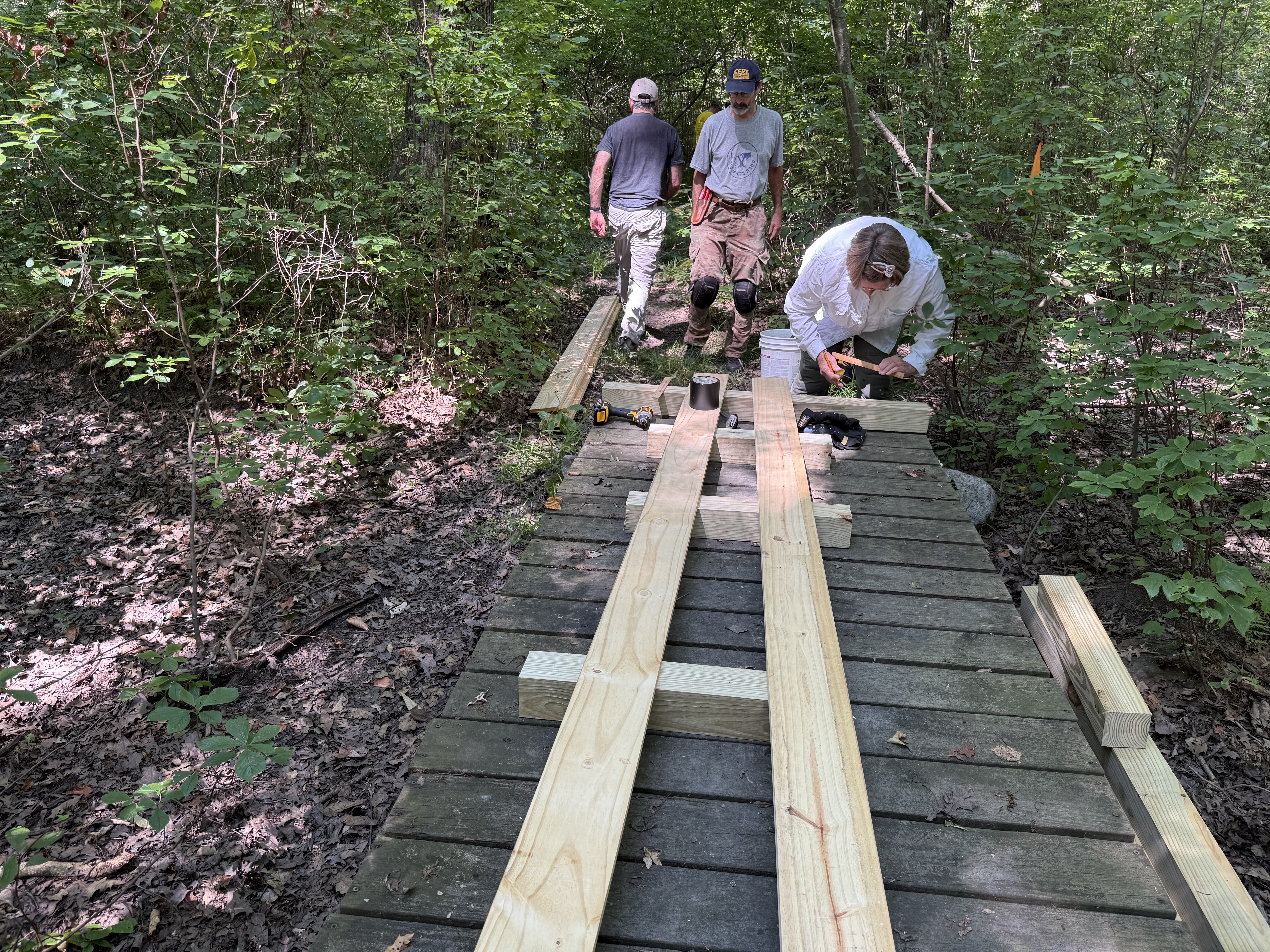 Armed with tools, work gloves, and plenty of community spirit, the group built puncheons — low boardwalks that help hikers cross wet or muddy areas — and trimmed back vegetation to keep the trail clear and inviting. The project not only improves accessibility for all who use the trail, but also protects the surrounding environment from erosion and damage.